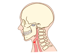 声が枯れたり出なくなったりするのは声帯が思いどおりに振動しないからです。そこで声帯が振動しやすいよう声帯を取り囲む首の筋肉を整えます。施術では首に過度な負荷をかけている原因を探し、それを解除するツボに鍼をします。